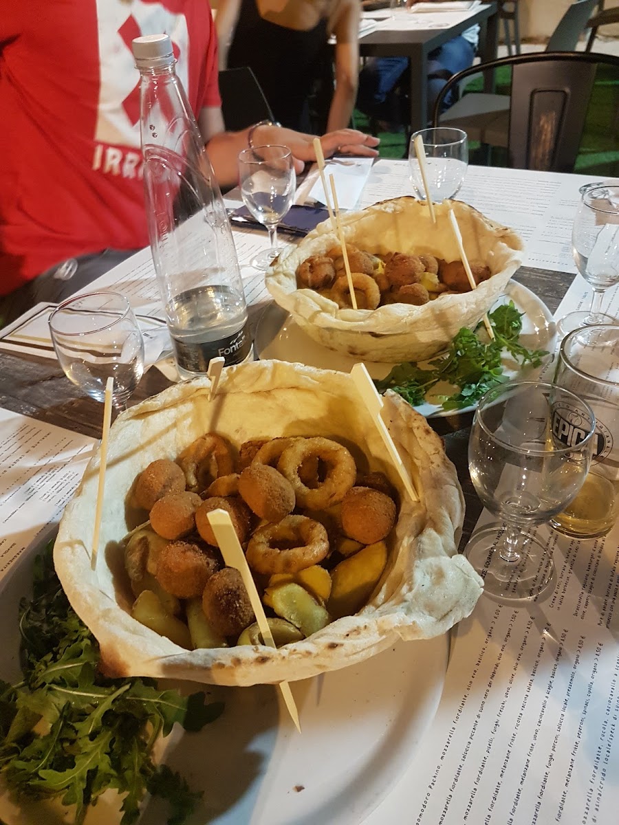 Nice place in a very old Palazzo. The fish was ok, the salad and the chips really good.